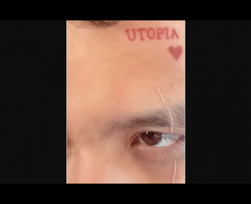 El cantante se ha grabado la palabra 'Utopia' en color rosa sobre el ojo izquierdo en referencia a una de las canciones más icónicas de la estrella del pop mexicana y a su disco homónimo de 2006.