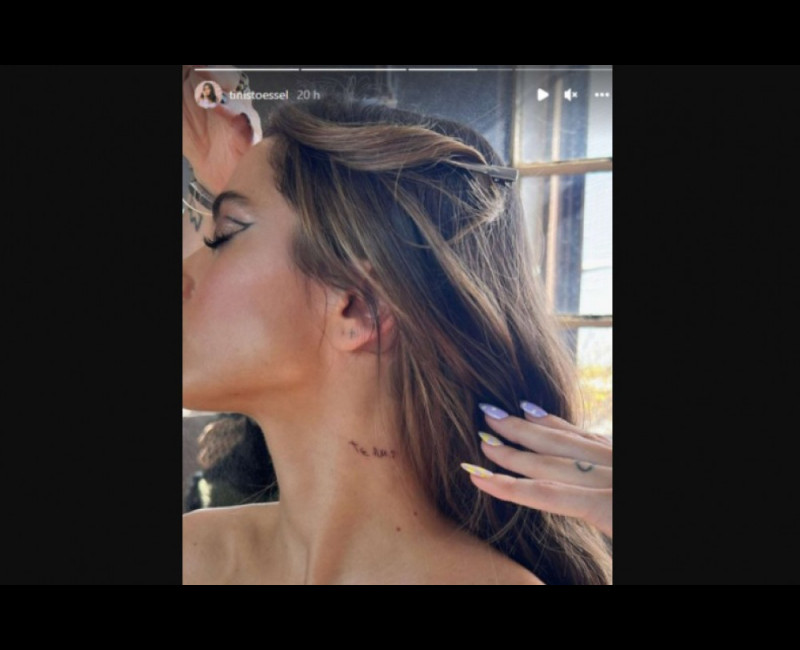 La cantante Tini Stoessel tiene varios tatuajes repartidos por todo el cuerpo y ahora acaba de añadir otro más a su colección en un lugar tan visible como el cuello, donde se ha grabado la expresión 'Te amo' escrita a mano por una persona muy importante para ella.